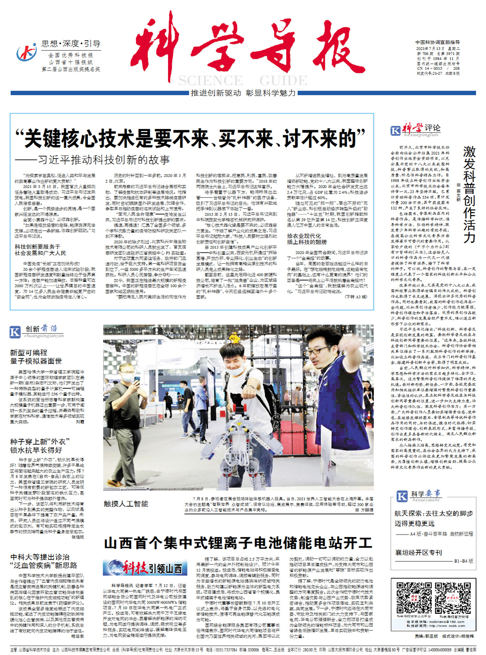 “为探索宇宙奥秘、促进人类和平与发展的崇高事业作出新的更大贡献!” 2021年5月15日,我国首次火星探测任务着陆火星取得成功,习近平总书记发来贺电。我国科技创新的这一重大成果,令全国人民倍感自豪。 创新,是一个民族进步的灵魂,是一个国家兴旺发达的不竭源泉。 全面小康靠什么?必须靠创新。 “如果走粗放经营的老路,能源资源无法支撑。必须走出一条新路,依靠创新驱动。”习近平总书记说。 科技创