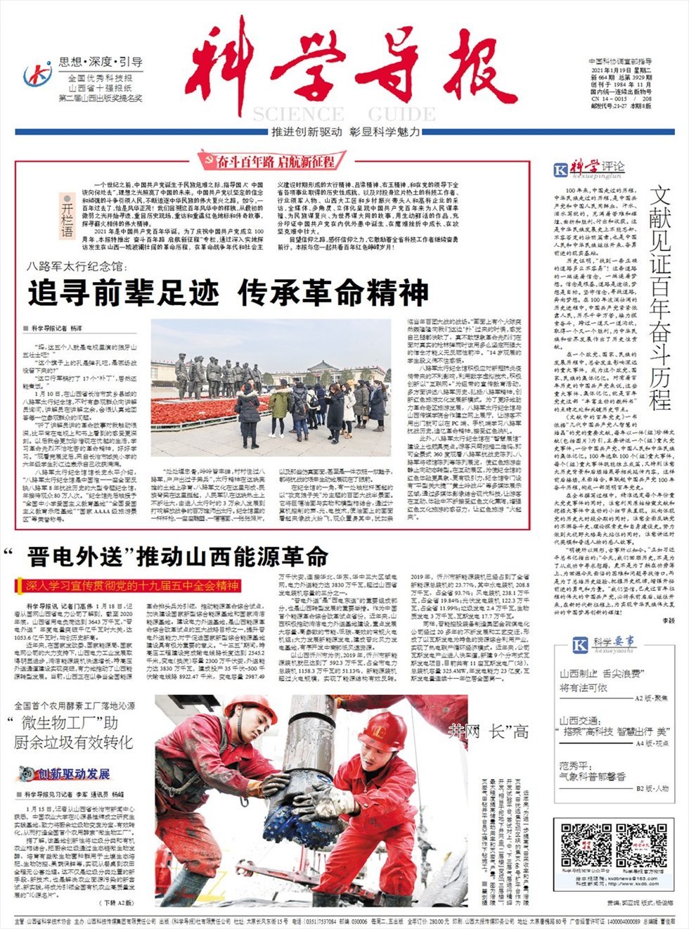 科学导报讯 记者门高伟 1月18日,记者从国网山西省电力公司了解到,截至2020年底,山西省用电负荷达到3643万千瓦,“晋电外送”年度电量突破千亿千瓦时大关,达1053.6亿千瓦时,均创历史新高。 近年来,在国家发改委、国家能源局、国家电网公司的大力支持下,山西电力工业发展取得明显进步,清洁能源装机快速增长,特高压外送通道建设实现突破,有力地推动了山西能源转型发展。当前,山西正在以争当全国能源