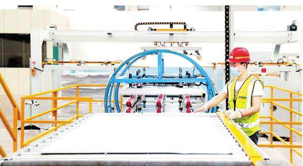 刘勇摄 8月10日,在灵石县达辰新材料科技股份有限公司生产车间,工作人员正操作机械化、智能化平台,高效地进行纸面石膏板的生产。目前,该企业已拥有纸面石膏板、建筑装饰粉类、仿古砖瓦等多条产品生产线,其中纸面石膏板、矿棉吸声板两大主力产品已经全面进入产销一体化阶段。