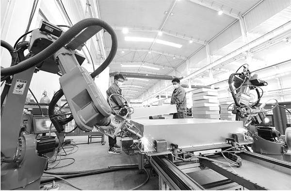 10月26日,在永济市华锐钣金制造有限公司生产车间,机器人自动化焊接设备正在焊接新能源汽车电池包。近年来,该公司通过引进专业钣金智能制造管理系统,实现了生产线的数字化、自动化和精益化,有效提升了工作效率和产品精度。