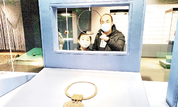 1月26日,山西青铜博物馆,一位市民正在为孩子讲解山西银饰的相关科普知识。当日,《如银岁月美意延年——山西传统银饰展》正式开展,展览展示了600余件各时期的山西民间银饰,体现了山西传统银饰与其他地方银饰的不同特点。此次展出的银饰成色足、手工制作技艺精湛,其高浮雕以及装饰工艺中采用的点翠和烧蓝方法呈现出山西银饰的最大亮点。