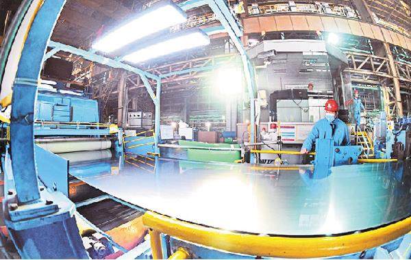 王旭宏摄 12月27日,中国宝武太钢集团不锈冷轧厂职工在生产客车钢面板。2021年,太钢通过技术创新,研发生产出地铁用客车钢面板,该产品先后应用于大连地铁、西安地铁、香港和埃及地铁。