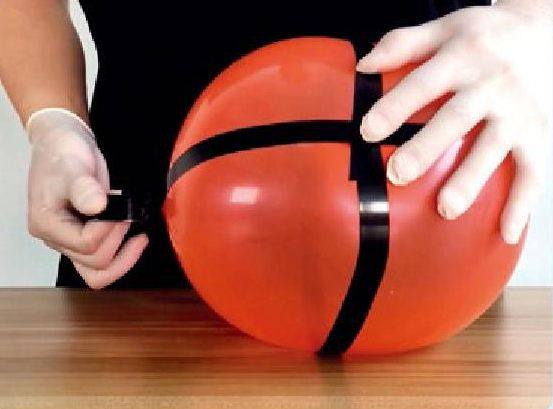 平时我们玩气球,总是把它往上拍,而不是往前拍。因为往前拍根本拍不远,一开始气球的速度很快,但经过很短的距离后,气球会突然急剧减速停下来。 如果想把气球扔得远一些,我们一般会选择往气球里面加水,然后把气球当水球玩。 不过,水球只适合夏日在户外玩,那是否有什么办法能把气球变得像运动球类一样呢?让我们一起来看看吧! 实验材料 气球,电胶布,打气筒。 实验步骤 实验步骤很简单:首先,用打气筒往
