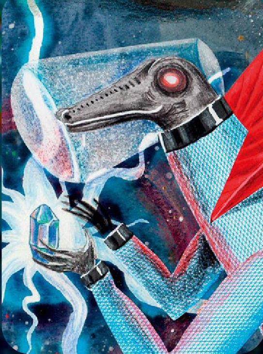 在玛若星球上蜥蜴族古老的传说中,天空中曾经有过两个赤鸦。因为两个赤鸦的光照太强了,玛若星球上的动物经常被烤焦,植物们也度日如年。生灵们曾经想迁徙到别的星球上,可他们哪里有这样的能力。后来还是喜翔家族出现了一个英雄。他飞到天空,将其中一个赤鸦吞进了肚子,那只赤鸦驾驶的车和上面的火球坠入大海熄灭,临坠落前,火焰蔓延到那只大鸟的身上,点燃了他身上的羽毛,他和火球一起消失在大海里。虽然这个英雄因此献出