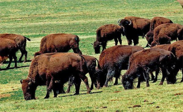 如今,北美洲中部的太平原上生活着几十万头野牛,它们是美国的国兽。与高大雄壮的身形相比,野牛脑袋上的那对角似乎有点儿短小了。 你知道吗?在北美洲曾经生活着一种角很长的野牛,那就是大名鼎鼎的长角野牛。 10万年前,每当春天来临,北美洲中部那一望无际的大平原就铺上了茸茸绿毯。 平原绿起来的时候,也是兽群回归的时候。猛犸象、长角野牛等动物历经艰难跋涉,回到了食物充足的大平原。此时,一小群一小群的