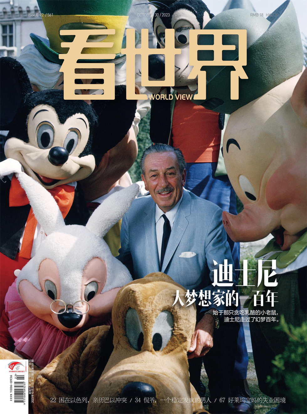 1955年,华特·迪士尼(后期上色图片) 今年10月15日,华特·迪士尼重新回到了自己的乐园—以“创梦家”铜像的模样。 位于中国香港的迪士尼乐园里,华特和米奇一起坐在奇妙梦想城堡前的长凳上,看着头顶的烟花璀璨绽放在夜空。长凳仿自格里菲斯公园旋转木马前那一条,当年,华特正是坐在那里,萌生了兴建迪士尼乐园的念头。 时间回到100年前,一切还得从那只黑白老鼠讲起。 1923年10月16日,带着身