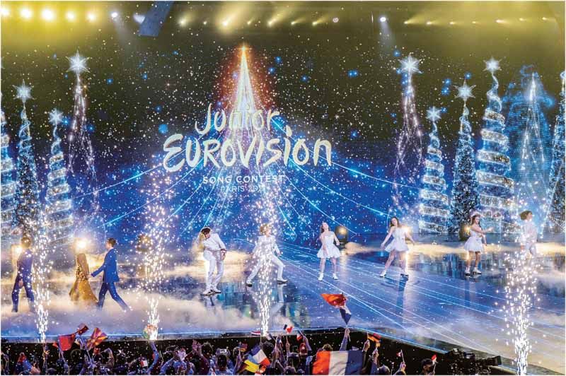 2021年少儿欧洲电视歌曲大赛决赛现场 2021年年底,奥密克戎变种病毒开始在欧洲传播。此时,巴黎塞纳河音乐厅上演了一场欧洲级的音乐赛事:少儿欧洲电视歌曲大赛。它是在全球享负盛名的欧洲电视歌曲大赛(简称“欧视”)的少儿版,比赛规则也基本同欧洲电视歌曲大赛一致。 对于参赛者及其亲友来说,这是一场视觉盛典、家庭团聚。但有时,它又像是一场战争。 欧洲少儿的舞台 在2020年于华沙举行的“少欧”比