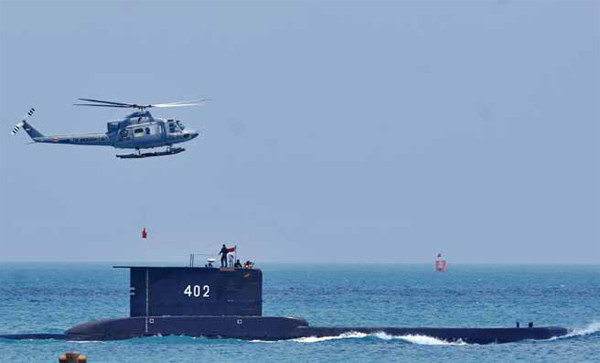 4月21日,印度尼西亚海军所属潜艇南加拉号(KRI Nanggala-402)在巴厘岛北部海域失踪。据新华社报道,印尼海军参谋长马戈诺4月25日向媒体证实,经过几天的搜救后,搜寻人员发现了南加拉号潜艇上的机械零部件和生活用品,并且在失联海域附近发现水下溢出的油污。这些证据表明,失联潜艇已经失事沉没,艇上53人也失去了生还的可能性。印尼海军因此将潜艇状态从失联更新为沉没,而搜救行动的重点也从营救潜艇