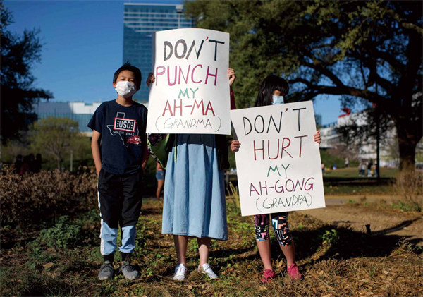 2021年3月20日,美国休斯顿举行主题为“停止仇恨亚裔”的游行集会,一个家庭手举着“不要打我奶奶”、“不要伤害我爷爷”的标语。图/人民视觉 “华人不是一盘散沙” 4月18日下午两点半,美国奥克兰唐人街,永旺商场一楼广源堂中药行,医师邝伟送走了当天最后一位病人。 这是一家典型的唐人街商铺,约一百二十多平米大小。刚进大厅,左侧是一整面传统木制百草柜,抽屉上用来标注药名的白色贴纸泛着淡淡的黄