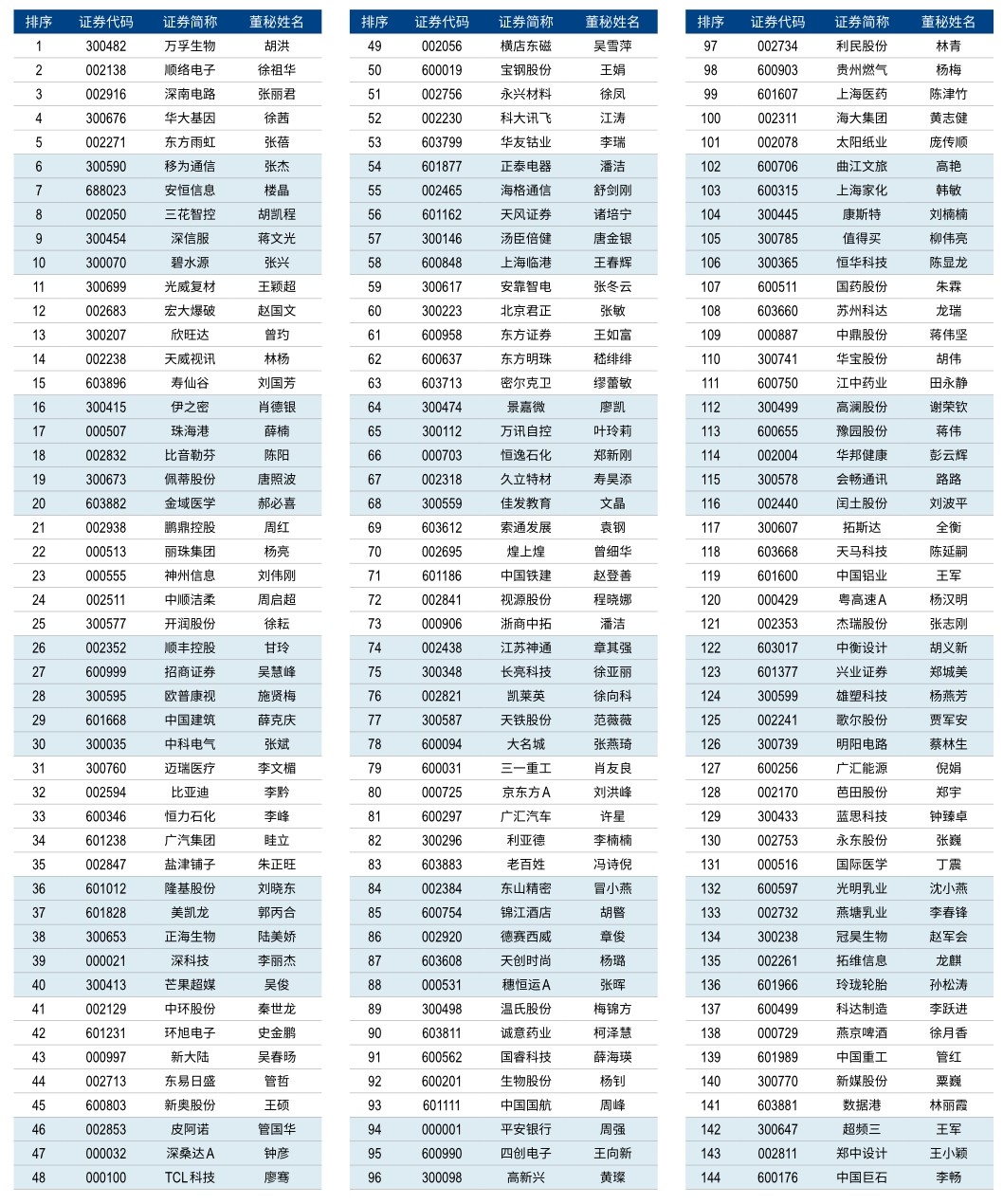 第十七届新财富金牌董秘榜单