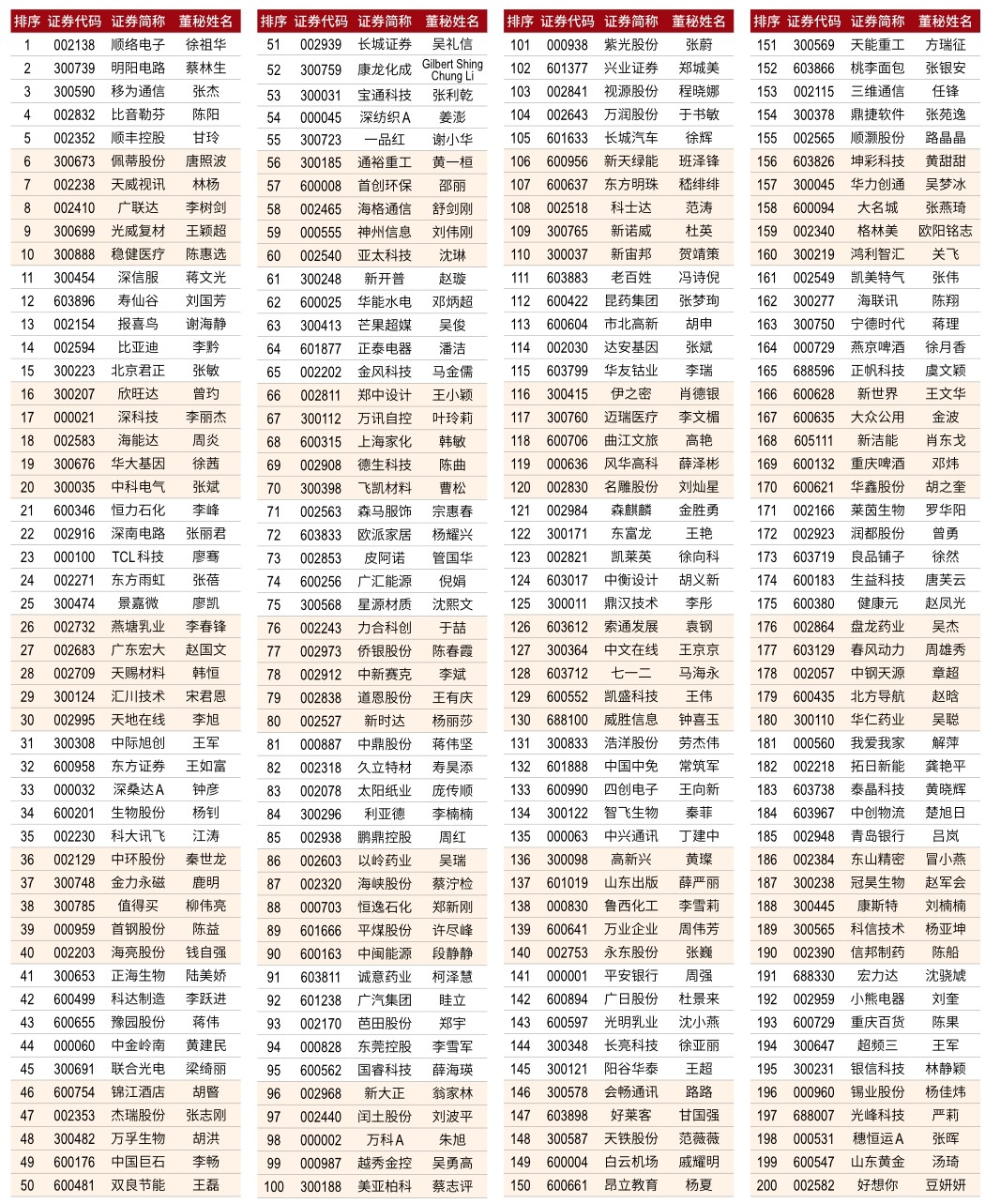第十八届新财富金牌董秘榜单