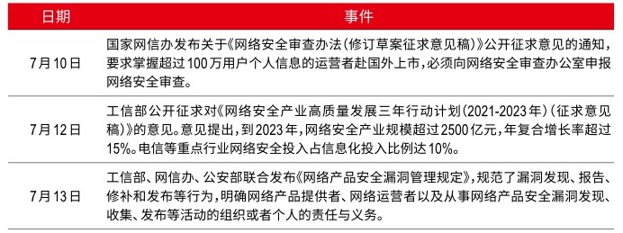 2021年6月30日,网约车巨头滴滴在美国低调上市。7月2日,网信办公告启动对滴滴的网络安全审查。此后数日,系列监管政策密集出台,“滴滴出行”和其他25款滴滴系APP全网下架。 本次滴滴事件凸显了国家对数据安全的高度重视。在6月10日《数据安全法》正式通过的大背景下,对滴滴的审查整顿正式拉开了数据安全审查大幕。 网络安全进入下半场 数字经济时代,5G+万物互联的产业模式雏形初现。新基建加速了