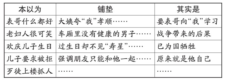 有些故事,当我们读完最后一句,才会恍然大悟:啊,原来如此!不过,细细品味,我们又会发现,这样的结局,前文早已多处铺垫,只是自己读得太着急了,才没有发现。本期“典藏小书房”,就让我们走进这样的故事,练练自己的眼力,看能不能发现铺垫;考考自己的脑力,看能不能猜到结局。 眼睛、脑子各就各位 表哥虽然我没见过,可早从妈那儿知道他是个世界少有的人。他只比我大一个月,可优点大大小小合起来至少有一百条,什么