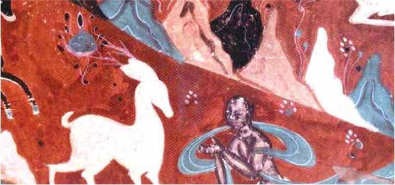 九色鹿是同学们儿时的记忆,它是美丽、善良、正义的化身,它来自有千年璀璨文化的地方——敦煌莫高窟。那么,这幅画和敦煌到底有哪些不解之缘呢?请大家根据我们的线索,踏上寻找九色鹿的旅程,和爸爸妈妈一起观察与思考,分享所见所感吧。 走进莫高窟第257号洞窟,让我们仔细观察《鹿王本生图》,你能看出它画的是什么故事,画里展现了什么情节吗?请你结合这些情节编一个新的故事。 小提示:请从细节入手理解图画的