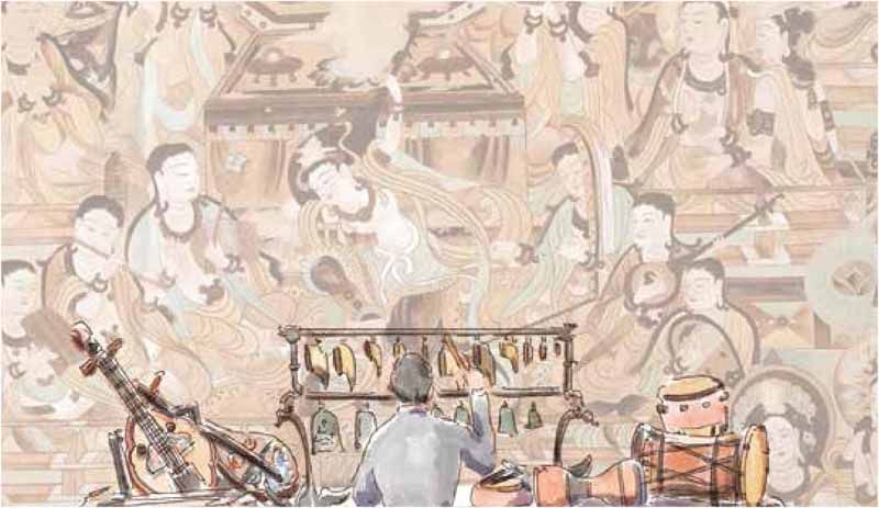 如果我们要举行一场隆重的音乐会,什么必不可少?当然是乐器啦!你知道在1000多年前,我国都有哪些乐器吗? 曾经有这样一位热爱音乐的人,当他走进莫高窟时,洞窟中满壁的歌舞画面深深地打动了他。那一件件奇妙的乐器、一幅幅乐舞画面令他痴迷,于是他索性留在了那里,成了一位真正的敦煌人,他就是作曲家庄壮。为了能够就近研究,他毅然辞去了甘肃省歌剧团副团长的职务,到敦煌做了一名研究员。此后,他历经千辛万苦,