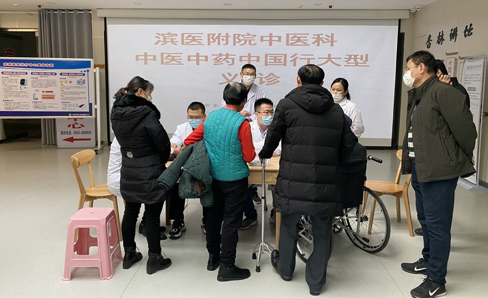 2020年12月10日上午,为加强中医药文化建设,推动中医药健康文化传播,弘扬中医药健康理念,山东省滨州市滨城区市东街道计划生育协会携手健康管理协会,联合市东社区卫生服务中心特邀请滨州医学院附属医院共同举办“中医中药中国行”大型义诊活动,让中医药惠及千家万户。 活动通知发布后,辖区的很多老年人、中年女性、育龄妇女慕名前来就诊。滨州医学院附属医院中医科知名专家前来坐诊,通过脉诊、舌诊的方式,免
