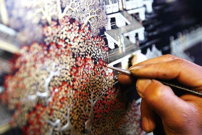 图1 漆器 旧时,山西姑娘出嫁的时候,如果娘家能陪送一套描金漆器家具,那是件倍儿长脸的事儿。在商贾巨富、达官显贵的家中,描金堆彩、繁缛奢华的漆器家具更是家中不可或缺的配置。(图1) 走进山西平遥古城,浓重的青灰色迎面扑来,城墙、街道、民居、商号、店铺、庙宇……全都保留着明清时期古城原有的格局和风貌。老街上,几家大大小小的漆器店内,各式各样的漆器泛着亮光,让人眼花缭乱。这些闻名于世的