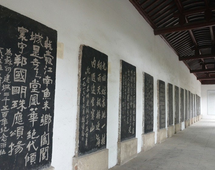 图1 苏州碑刻博物馆内碑刻 古朴典雅、玲珑清秀、精巧雅致的苏州古典园林,是苏州的骄傲。而碑刻、苏绣、丝绸、戏曲、民俗5个专题博物馆,则展示着苏州悠久的历史和灿烂的文化。 苏州碑刻博物馆,坐落在人民路南端的苏州文庙内,黄墙高耸,殿宇巍峨。陈列在复廊中的经济碑刻,是研究明清时期资本主义在苏州萌芽的史料。还有大量吴中文献碑刻,如 《过云楼藏帖》 《人帖》 《丛帖》等。更有被列为全国重点文
