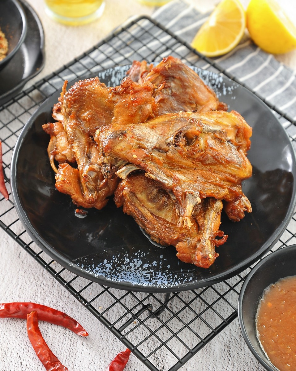 鸡架,就是除去鸡身上鸡胸、鸡腿、翅膀、鸡爪等部位后剩下的骨架。鸡架肉少而骨头多,因此得到了一些形象的外号,如“鸡壳”,而人们常说的“鸡肋”也是鸡架的一部分。 鸡架烹饪方式千万种,但最受欢迎的莫过于烤鸡架了。烧烤鸡架能够将鸡架骨髓中的油脂充分炙烤出来,令鸡架枣红的表面显得油光四射,诱人无比。有的人还习惯在烧烤的过程中添加一些白糖,美味的鸡架与焦糖的结合绝对能够令人垂涎欲滴。细细咀嚼鸡架,鲜香咸甜辣