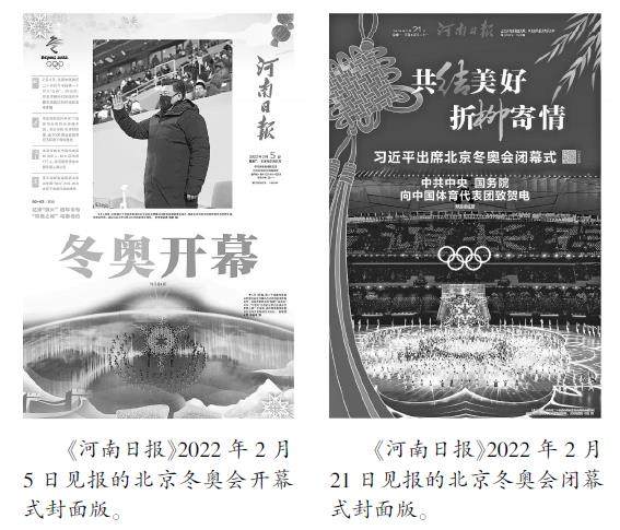 【摘要】在重大主题报道中,面对电视、网络媒体的时效优势,党报版面如何独辟蹊径,有所作为?《河南日报》聚焦北京冬奥会开、闭幕式上的“中国式浪漫”,以精心打磨的封面式头版和大气深刻的横通跨版,打造属于《河南日报》的独特风格与品牌效应,用版面创意书写浪漫答卷,让有思想的版面直击人心。 【关键词】北京冬奥会;新闻版面;创意 习近平总书记在考察2022年冬奥会、冬残奥会筹办备赛工作时提出,“希望国内外媒