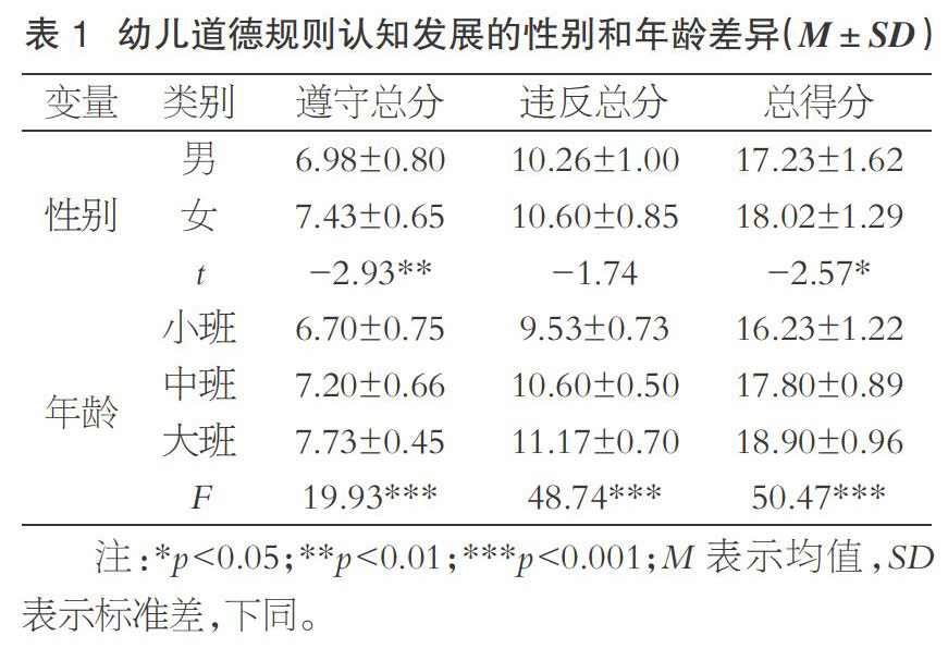 【摘要】内疚作为一种需要自我表征、自我评价参与的道德情绪,与个体道德规则认知关系密切。本研究选取90名幼儿作为被试,采用故事访谈法和问卷法分别测量其道德规则认知和内疚发展情况,揭示道德规则认知对其内疚的影响。研究结果表明:幼儿道德规则认知在年龄和性别上均存在显著差异,道德规则认知水平随着年龄的增长而提高,女孩的水平显著高于男孩;幼儿内疚的年龄差异显著,其内疚发展水平随着年龄的增长而提高;道德规则认