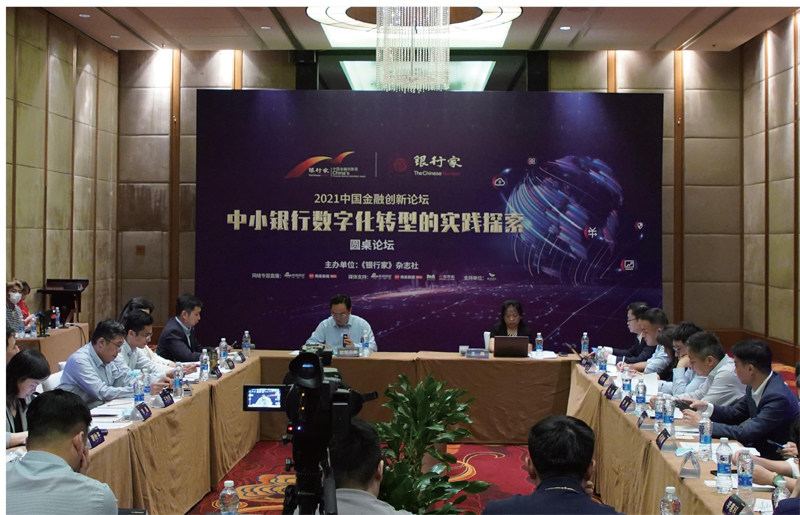 由《银行家》杂志社主办的“2021中国金融创新论坛”特设主题为“中小银行数字化转型实践探索”的圆桌论坛。论坛由中央财经大学互联网经济研究院副院长欧阳日辉和《银行数字化转型:路径与策略》副主编王炜主持,邀请来自银行与科技企业的多位专家共同探讨中小银行数字化转型的实践与探索,以期为中小银行数字化转型提供一些有参考价值的新经验和新思路。 中小银行数字化转型是一个大的话题,涉及银行的方方面面,本次论坛限