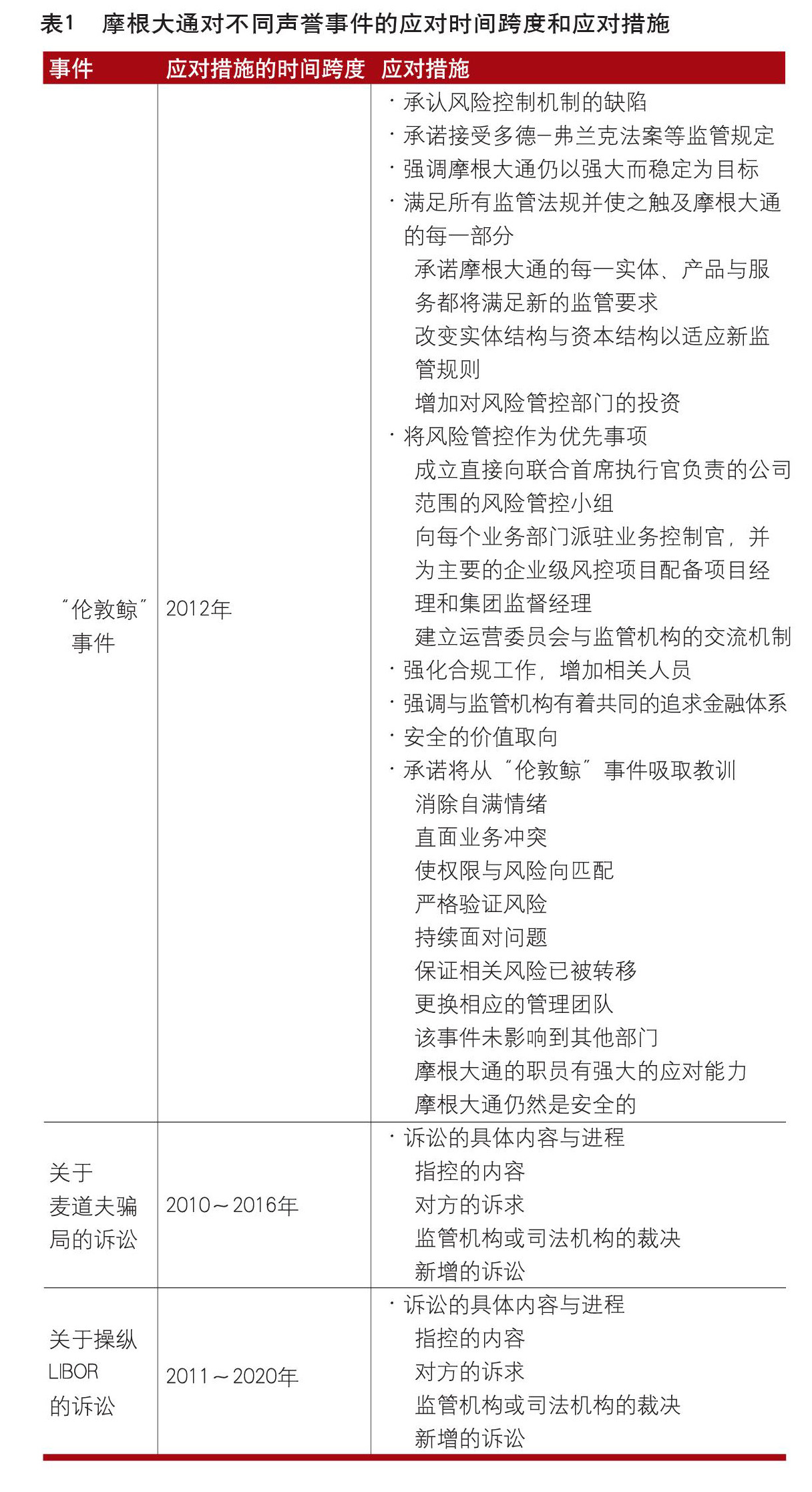 在声誉风险管理中,短期与长期声誉风险的划分是非常必要的。声誉事件的持续时间不同,所产生的声誉风险有着短期与长期的区别,应对思路与措施也存在差异。对于短期声誉风险,强有力的应对措施可以收到较好的效果,大多可以在短期内得到控制;对于长期声誉风险,则可能持续数年甚至十余年,需要强调应对措施的一致性与可持续性。在大型金融机构的声誉风险管理实践之中,可以很自然地看到短期与长期声誉风险在应对上的差异。但是,声