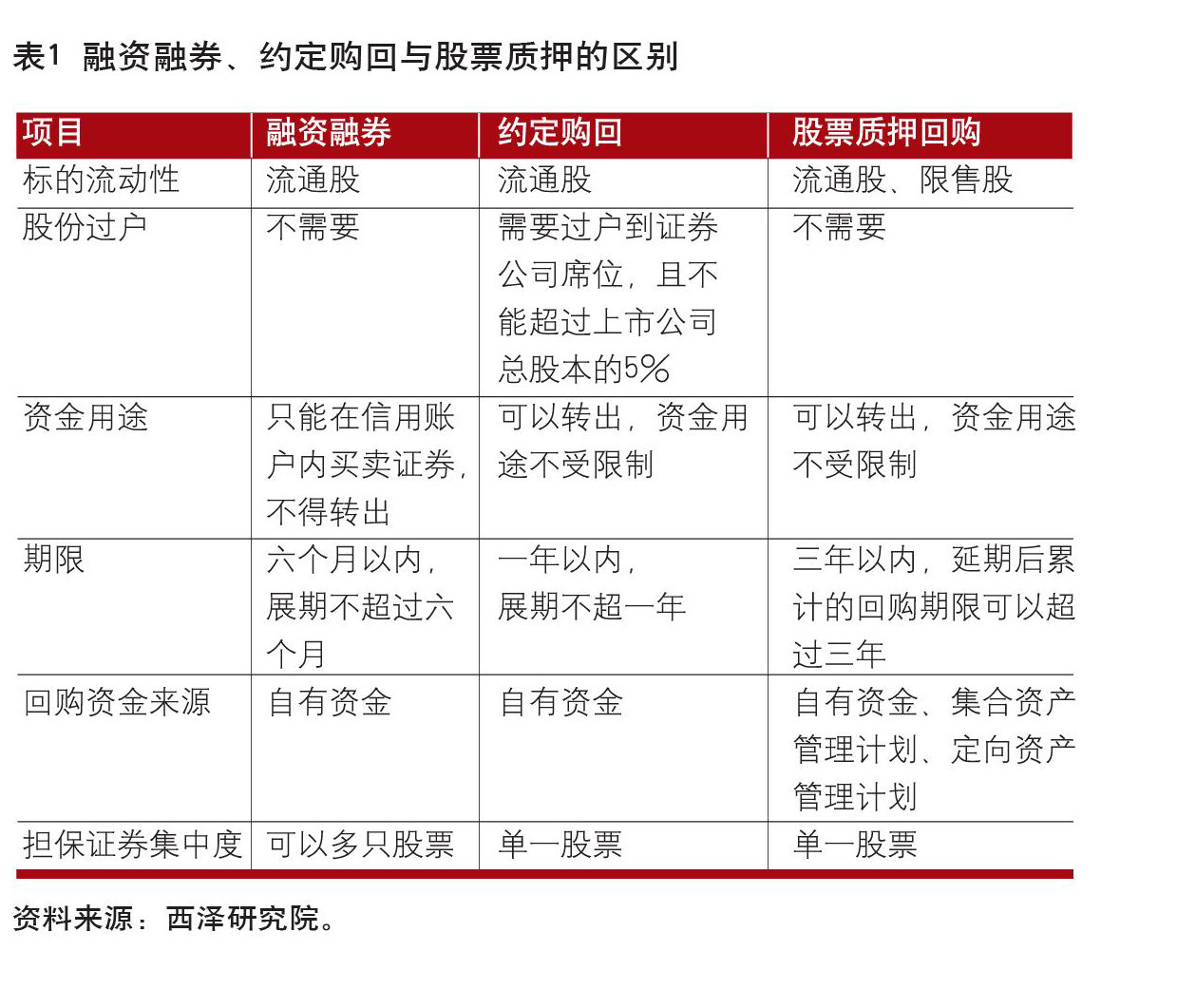 如何理解股权质押 股权质押(Pledge of Stock Rights),又称“股权质权”,是指出质人以其所拥有的公司股权作为质押标的物而设立的质押。股票质押回购已成为证券公司的重要盈利来源之一,并形成了与融资融券和约定购回业务的优势互补。但同为类贷款业务,股票质押回购业务与融资融券、约定购回业务之间存在一些区别(见表1)。在展期和回购资金来源等方面,股票质押回购的准入条件明显较其他两者更为宽