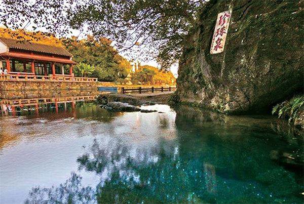 “临池顿觉旅魂销”“一水光摇万斛珠”,吟诵着珍珠泉的古诗词走进珍珠泉,走进适宜全年旅游的定山西南麓。南朝时期,热衷于佛教的梁武帝为高僧法定建定山寺于狮子峰下,始于斯时的珍珠泉。后来印度僧人达摩一苇渡江至定山寺,面壁数载。明清时代以珍珠泉为中心建楼、台、亭、阁三十余座,形成了融山水园林为一体的优美景观,自古便是金陵“江北第一游观之所”。在珍珠泉景区大门前,就有丰富的地下水源从满是苔藓的石墙上潺潺