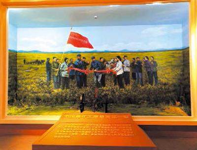 六十多年前,一群风华正茂的青年响应祖国号召,从四面八方汇聚北大荒,用他们的青春梦想与激情开启了开垦北大荒的艰苦创业,拉开了中国青年志愿垦荒的序幕。 1955年8月,新中国第一支垦荒队——“北京市青年志愿垦荒队”来到鹤岗市萝北县,此后大批青年和转业官兵响应党中央、中央军委的号召开发建设北大荒,扎根在了这片黑土地上。 中国青年志愿垦荒第一犁 展厅序言部分 岁月长廊 垦荒队