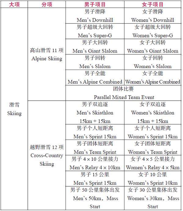 A Chinese-English List of the Sports Programmes in Winter Olympics 冬奥会项目名称汉英对照词表
