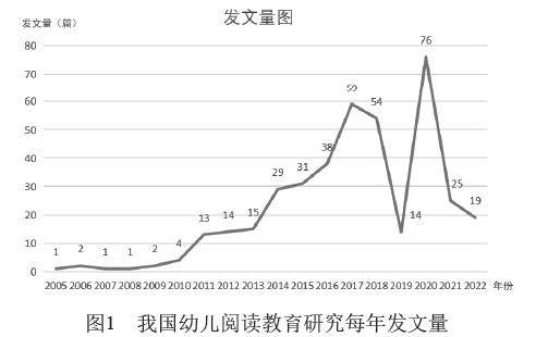 绘本阅读是幼儿园教育教学活动的重要组成部分,在幼儿的成长与发展中发挥着重要的作用。为了解幼儿园绘本阅读的研究热点,笔者从中国知网检索出2005年至2022年在中文核心期刊发表的有关绘本阅读的文章数据,并将数据导入CiteSpace进行可视化分析。分析得出,幼儿园绘本阅读的研究热点主题为幼儿园绘本阅读的内涵及价值、绘本阅读出现的问题、绘本阅读的解决策略等,以下是具体的介绍。 一、研究设计 (一)