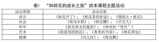 班本课程是以班级为单位,由师生双方共同开发的且富有班级特色的课程,以班级幼儿的兴趣和需要为出发点,其内容来源于幼儿的实际生活,它从属于园本课程却又不同于园本课程。有学者认为,教师在幼儿园课程建设的过程中需要坚持适宜性原则,以促进幼儿有效的发展。笔者以促进幼儿的全面发展为教学目的,以班级为基点开展大班班本课程“和桂花的成长之旅”。笔者在教学实践中不断探索和完善班本课程,收获了许多关于班本课程实施的知