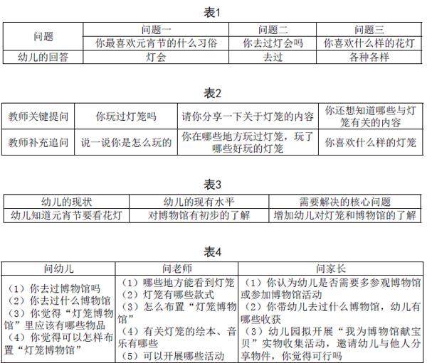 博物馆课程是教师结合幼儿已有的生活经验开发的综合性课程。例如,笔者所在幼儿园的教师结合幼儿园的海棠大道,开发了“海棠花博物馆”课程;结合幼儿每天都会接触到的文具,开发了“笔的博物馆”课程。春节过后,幼儿在幼儿园度过的第一个节日就是元宵节,而元宵节的花灯则是幼儿比较感兴趣的物品。对此,笔者所在幼儿园决定追随幼儿的兴趣,开发新一轮的博物馆课程,即“灯笼博物馆”。 一、审议序列预设 (一)基于幼儿的