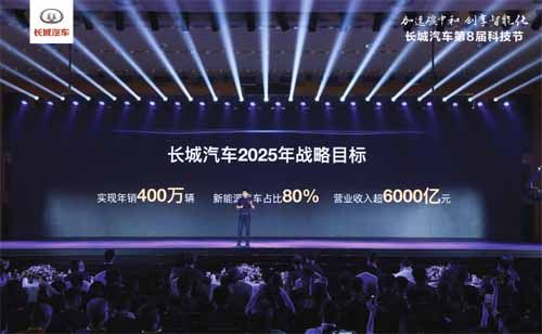 长城汽车2025战略发布会暨第8届科技节开幕式 当下,新能源、智能汽车正在成为汽车产业发展的新引擎,给予了中国汽车重要的历史机遇。6月28日,“长城汽车2025战略发布会暨第8届科技节开幕式”在保定哈弗技术中心盛大召开,长城汽车正式发布2025战略——到2025年,实现全球年销量400万辆,其中80%为新能源汽车,营业收入超6000亿元。未来五年,累计研发投入达到1000亿元。 长城汽