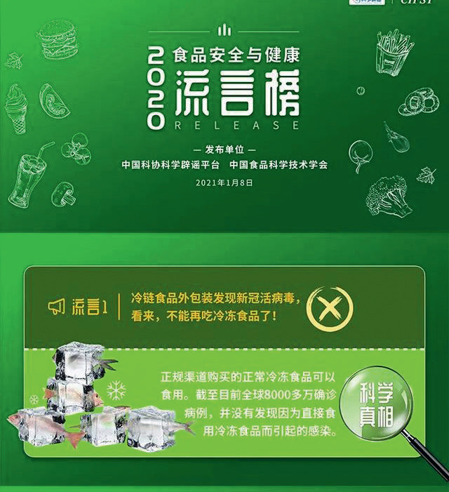 2020 年食品安全与健康流言榜发布
