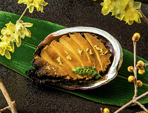 鲍鱼,一直是海鲜中珍贵的存在,虽然叫“鱼”,却是一种贝类。很多菜市场都可以称重或按个购买,尤其以俗称“八头鲍”“九头鲍” 的小个头鲍鱼较为常见,而被视为餐桌上的“软黄金”——单头鲍,则很少见到。一只单头鲍足有一个成年人的巴掌大,重约500 克,一般为6~8年生鲍鱼,价格高昂。 在日本,单头鲍有一种特别的吃法。 备料首先,厨师将上好的单头鲍给客户挑选,然后粗略冲洗表面,用80℃的热水浸烫
