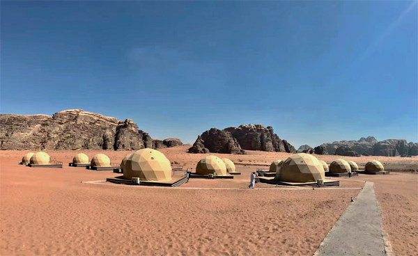 瓦迪伦月亮峡谷 从玫瑰古城佩特拉走向出口的时候,逆风而行,一路在吃灰。古城的地势低于外围入口处,我们进城的时候是挺直了腰身,头往后仰,一层一层往下冲;现在出去的时候呼吸有点急促,缓慢地一脚一脚在爬坡。脸颊很刺痛,额头在冒汗,用手轻轻一撸,还混合着古城里的“金粉”。清风如刀尖,艳阳像镁光灯,皮肤在一点一点地发出求救信号。 午餐结束后,小兰导游一拍大腿说:“你们的包里都带着披肩或者围巾吧,看我