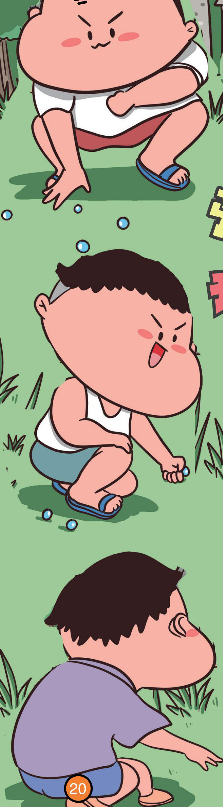 小哥哥说他有很多弹珠。 我问他,什么是弹珠? 小哥哥说,弹珠是圆圆的。 喝汽水的时候, 我看到汽水里冒出小小的弹珠; 和妈妈路过狮子桥的时候, 我看到狮子的嘴巴里 含着一颗大弹珠; 在池塘边玩耍的时候, 我看到荷叶上漂着 许多大大小小的弹珠。 可是 小哥哥说,那些都不是弹珠。 那弹珠到底是什么样的呢? 小哥哥从口袋里拿出一颗玻璃球, 圆圆的,透明的, 里面还有蓝色的