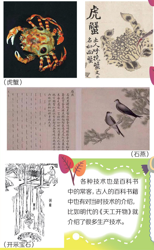 百科书籍,是我们学习知识的好伙伴。动物、植物、科学技术,它们的照片加上文字介绍,让我们看到了丰富多彩的世界。但是你能想到吗?在没有照相技术的古代,百科书上也有栩栩如生的图片,这些图片可都是一笔一笔画出来的哦! 《异鱼图》是一部“清代海洋百科全书”,书中画出了很多海洋生物。小星星,你看,这些画和照片简直是一模一样呢! 除了介绍海底生物的手绘百科书籍,我国古代还有介绍鸟的百科书籍,这本鸟类百科书籍