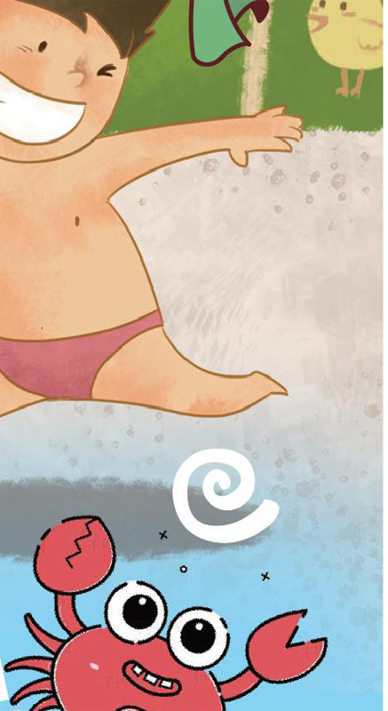 周日下午,妈妈把我从床上拉起来说:“我们去海边抓螃蟹,好不好?”“太棒了!”我立马跳下床,穿好衣服,和爸爸妈妈直奔小东海。 太阳如同一个需要补充能量的大火球在海平面上燃烧,满天的云霞如同盛开的凤凰花笼罩着大地,远处白色的帆船、银色的军舰(jiàn)都被镀(dù)上了一层火红色。“嘟嘟”的汽笛声回荡在海面上,一艘艘渔船装满金光闪闪的鱼、青色的虾和蟹返港了。海风轻抚着海浪。沙滩上是一个个小洞,远远望