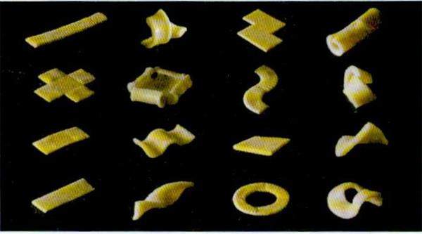 意大利面通常是螺旋状或管状,这些形状的最大缺点是很占包装空间,一个意大利面的包装只能容纳其体积约40%的意面,剩余的都是空气。最近,科学家发明了一种煮熟以后会变卷曲的扁平意大利面,这种面上刻有沟槽,沟槽的形状和深度由研究人员事先通过计算机和物理实验确定,再通过手工或自动机器冲压工艺产生。水煮时,这种面条由于沟槽面的膨胀率小于平滑面的膨胀率而卷曲变形。理论上,还可以让这种面条水煮后呈现更复杂