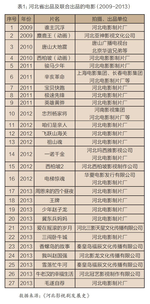 文艺评论家李准认为“电影现象”要具备三个必须:必须有本地区的地域文化特色、必须有引起轰动的一流作品、必须能提供推动全国电影创作的一些普遍经验。河北电影在经历了漫长“洼地跋涉”后,从2009年开始逐步积蓄力量,到2013年的五年时间里集中出现了一批优质的电影作品。这一时期的河北电影,在选题挖掘、主题提炼和艺术手法上突破创新,在坚守河北人文精神的同时拓展其内涵,更加注重思想性、艺术性、商业性的融合,一