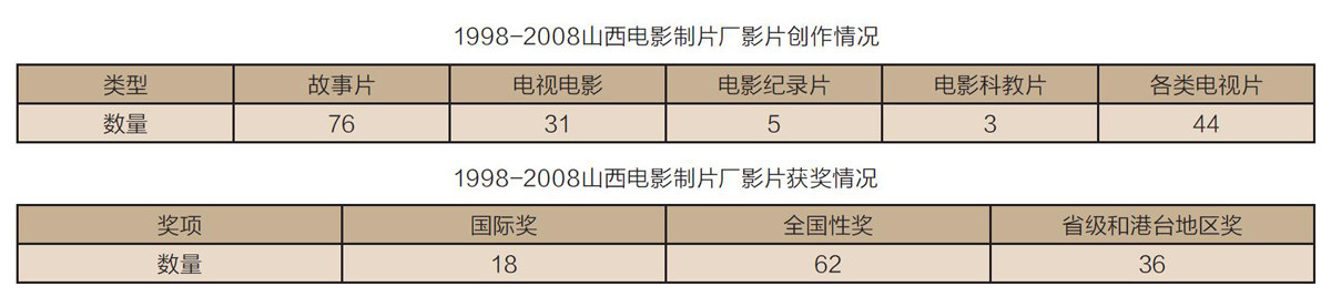 和其他的国有电影制片厂一样,山西电影制片厂也是历史的产物。经历了新中国成立初期的数次停停办办,改革开放初期的缓慢发展,再到新世纪的短暂腾飞,新时代的艰难探索,山西电影制片厂一路摸爬滚打,试图找到自己的一席之地,尤其是在1998年到2008年的十年,山西电影制片厂进入了跨越式发展的十年,不仅在拍片数量上实现了质的飞跃,在影视作品质量上也取得了喜人成绩,使得山西电影制片厂一跃成为这一时期省办小厂的标杆