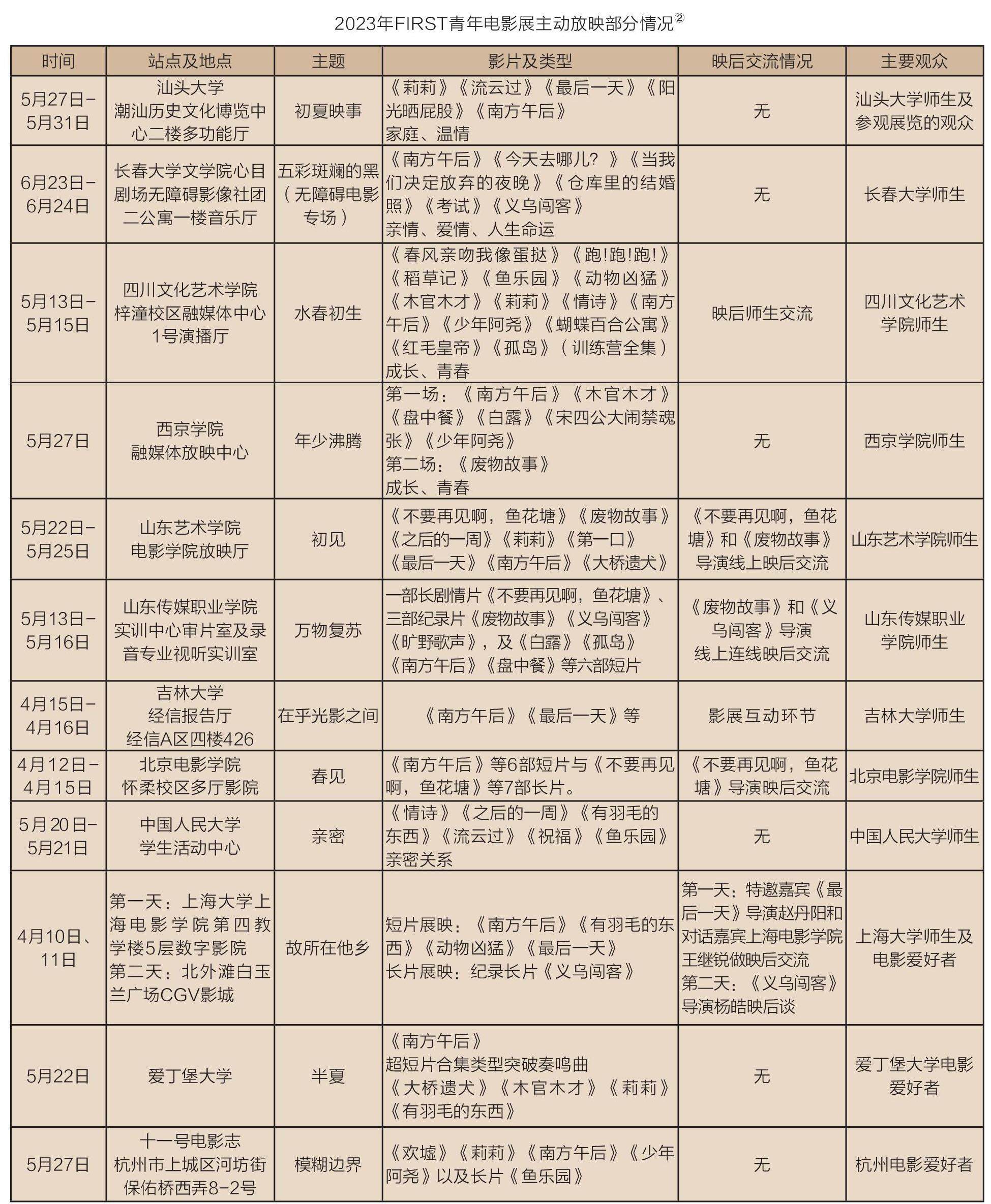青年电影节以青年影人、青年观众与青年影评人等为主体,专注于推广青年创作,往往致力于形塑新锐化、新生态的影像文化。在国内的青年电影节中,主动放映和高校展演是两种重要的展映形式,它们在形式和内容上有所不同,但也相互补充,共同推动着青年电影节的发展。本文尝试梳理国内青年电影节中的主动放映和高校展演模式,对其各自特征进行阐述和比较,并尝试论证这两种节展放映模式与青年文化之间的互动关系。 一、国内青年电影