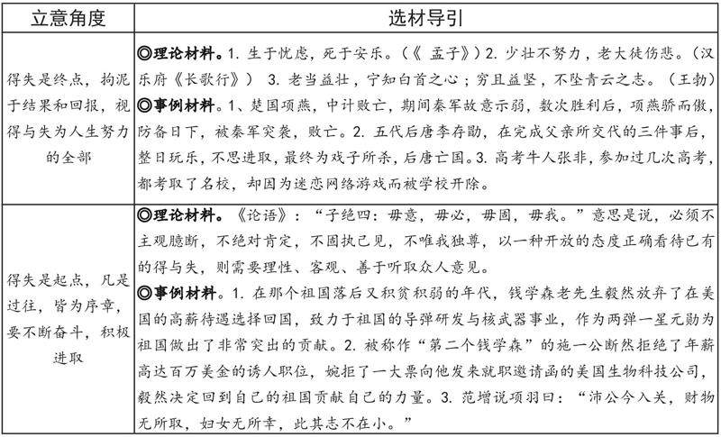 ●考卷真题 有人把得与失看成终点,有人把得与失看成起点,有人把得与失看成过程。对此,你有怎样的体验与思考?写一篇文章,谈谈自己的看法。 【注意】①角度自选,立意自定,题目自拟。②明确文体,不得写成诗歌。③不得少于800字。④不得抄袭、套作 ●真题解读 命题材料分为两部分,第一部分是“有人把得与失看成终点,有人把得与失看成起点,有人把得与失看成过程”。这是展开讨论的前提,它告诉了我们这篇考场